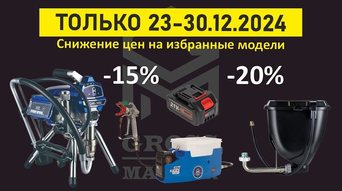 Только с 23 по 30 декабря 2024 г. Вы можете купить следующий ассортимент окрасочного оборудования со скидками: