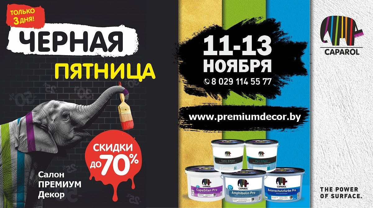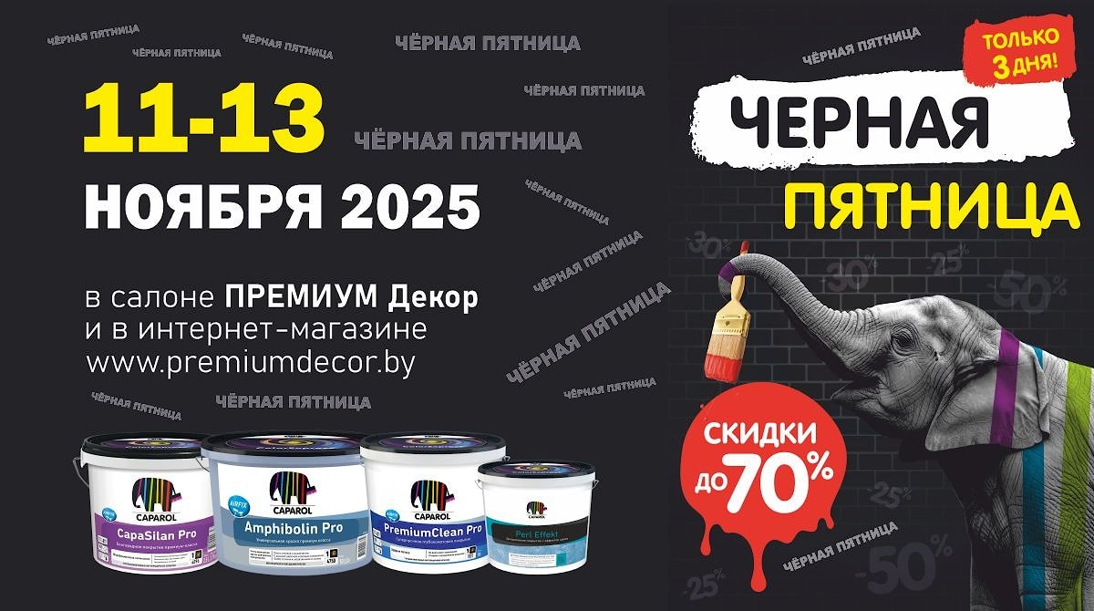 Черная пятница на ассортимент Caparol в салоне ПРЕМИУМ Декор и в интернет-магазине premiumdecor.by 11-13 ноября 2025 г.!