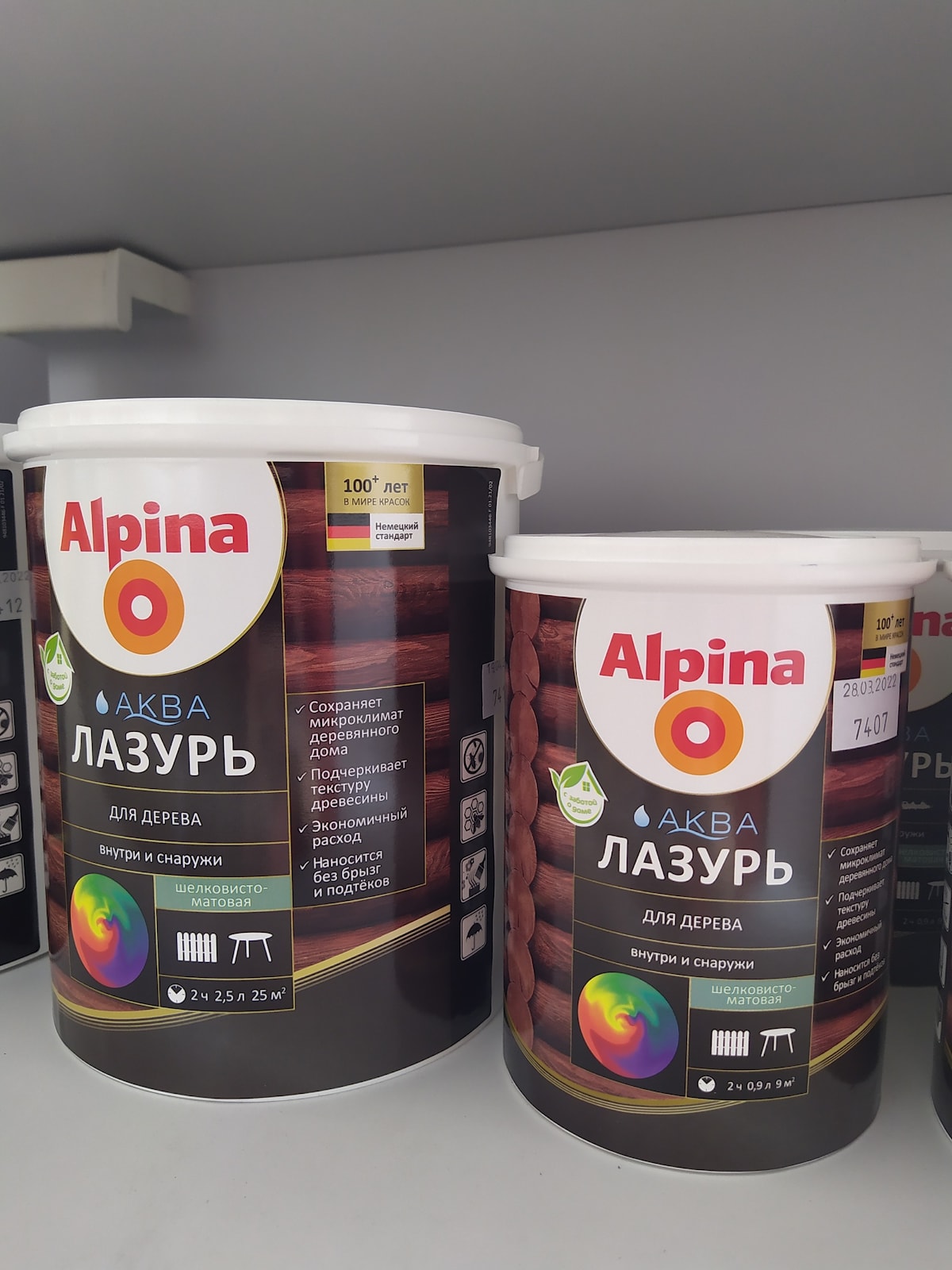 Расход. Около 100 мл/м² на один слой гладкой поверхности с нормальной впитывающей способностью. Расход увеличивается на шероховатых поверхностях, точный расход Alpina Аква лазурь для дерева определяется пробным нанесением.