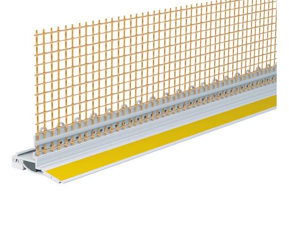 Эта штукатурная полоса подходит для окон площадью свыше 10 м2 и толщины изоляции до 300 мм в наружном и заподлицо с фасадом. Профиль должен быть приклеен без прикручивания.