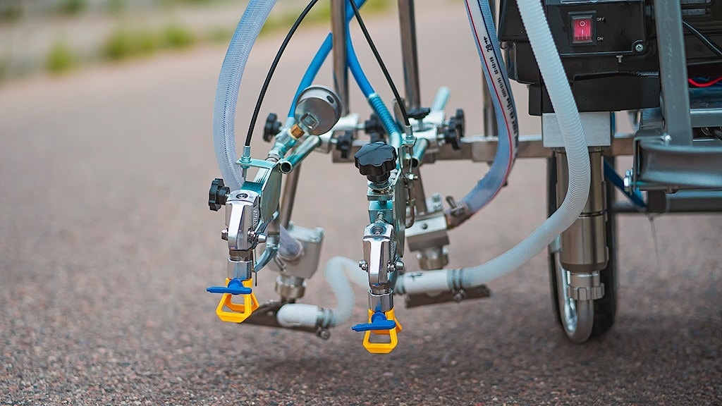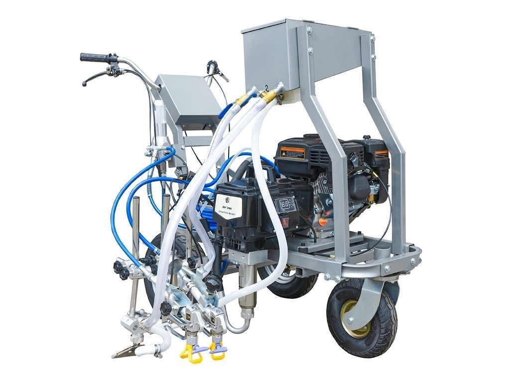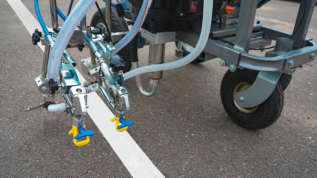Разметочная машина Dino Power 6335L предназначена для средних и больших объемов работ по нанесению дорожной разметки. Этот агрегат – профессиональное оборудование для разметки автомобильных дорог и пешеходных переходов, паркингов торговых и бизнес-центров, складских помещений и спортивных площадок, взлетно-посадочных полос аэропорта и прочих мест, где необходимо качественное и быстрое нанесение разметки. Маркировочная машина идеально подойдет для непрерывных и тяжелых работ.