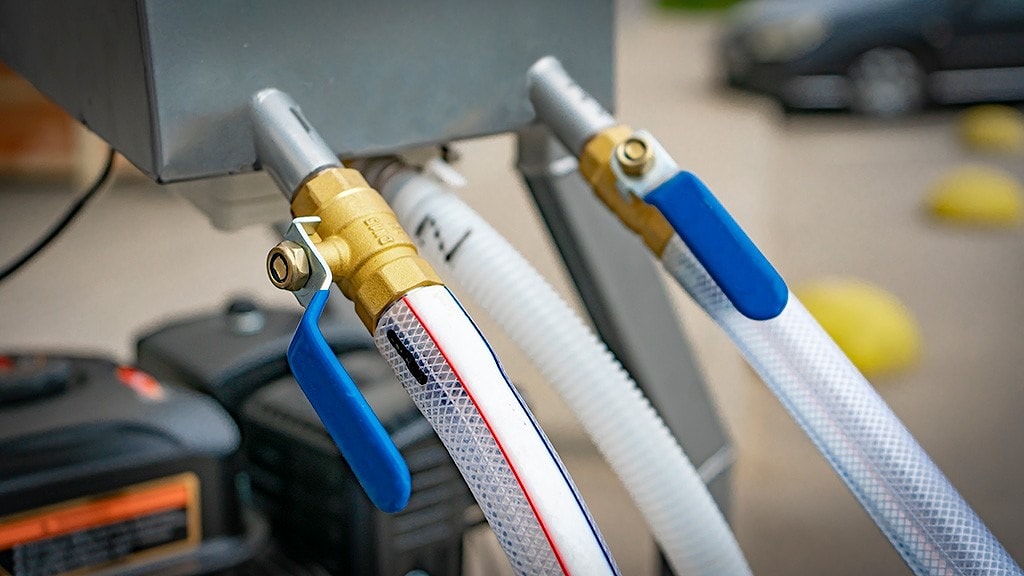 Производительность насоса составляет 5 л/мин. Вследствие этого можно работать соплом с максимальным диаметром 0,035" (при работе на 1 пост), либо 0,023" (при работе двумя распылителями).