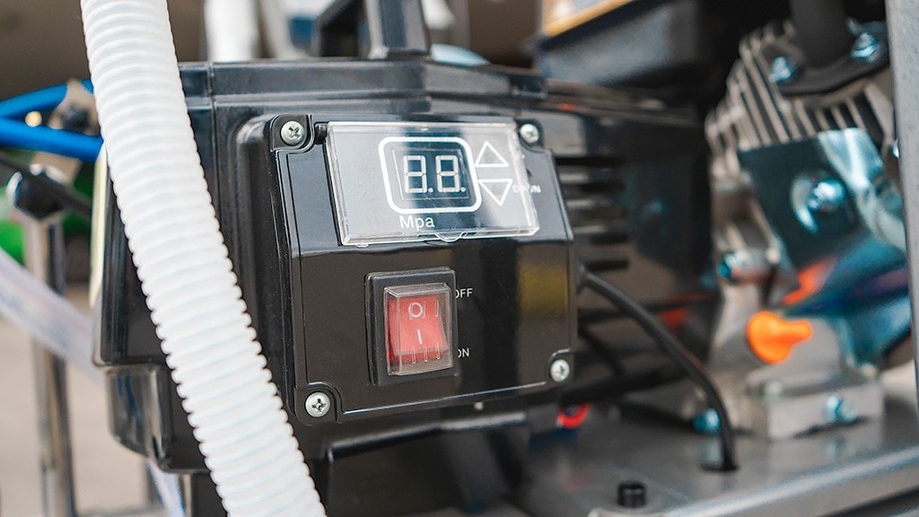 Цифровой LED-дисплей точно отображает текущее давление. Максимальное рабочее давление при работе на 1 пост – 150 атмосфер, при работе на 2 поста – 120 атмосфер.