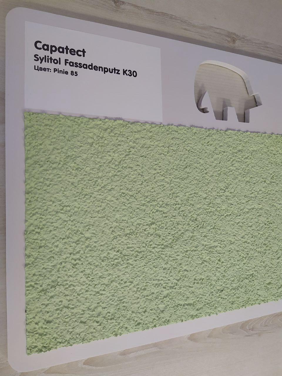 Колерованные фасадные штукатурки Sylitol-Fassadenputz при определённых атмосферных условиях могут получить при высыхании мутноватый оттенок из-за химического связывания. Это не является техническим или функциональным недостатком и не может считаться основанием для рекламации. Чтобы избежать неравномерности цвета, колерованные штукатурные поверхности нужно покрыть продуктом Capatect-SI-Fassadenfinish 130 в тон штукатурки.