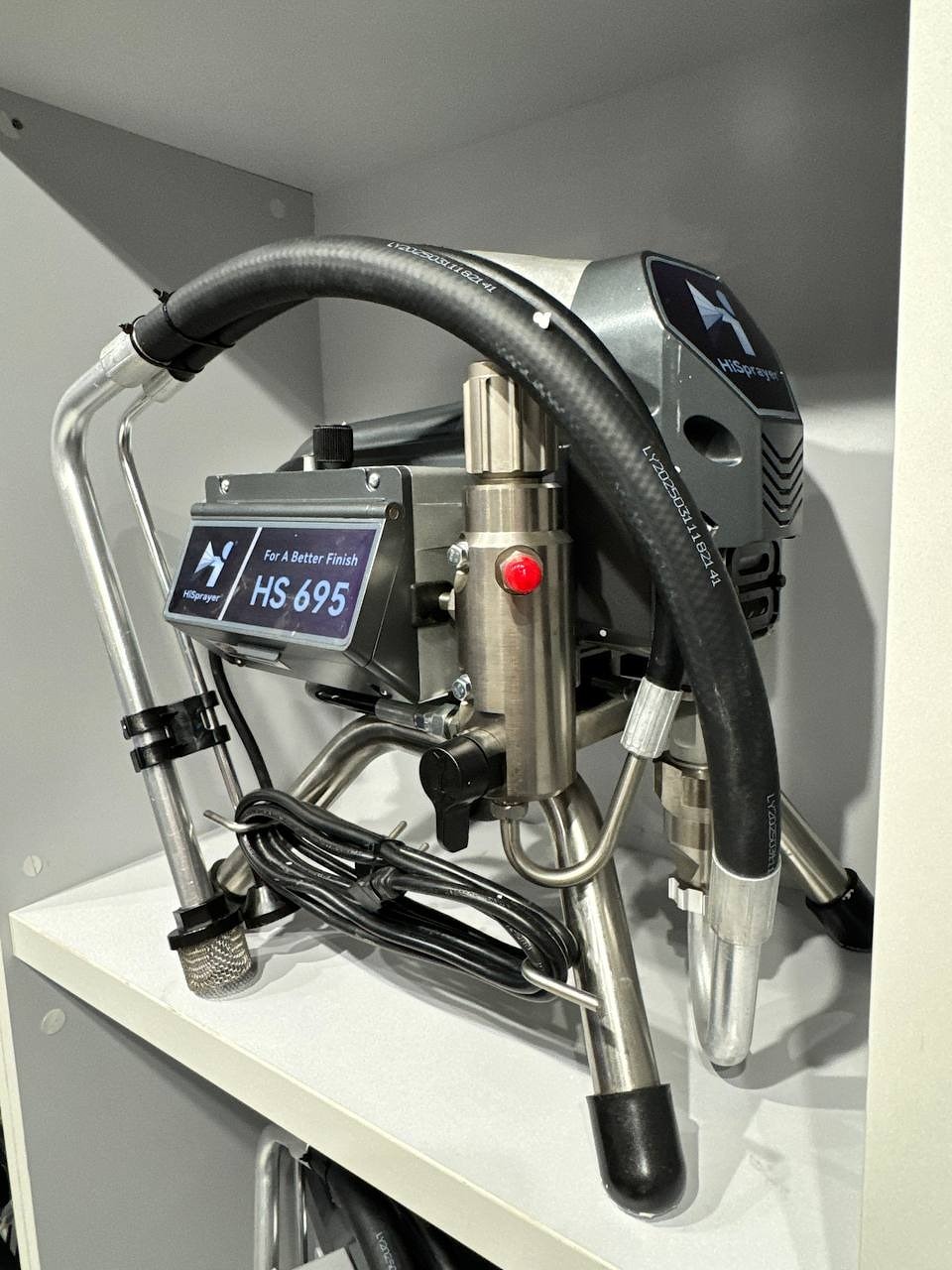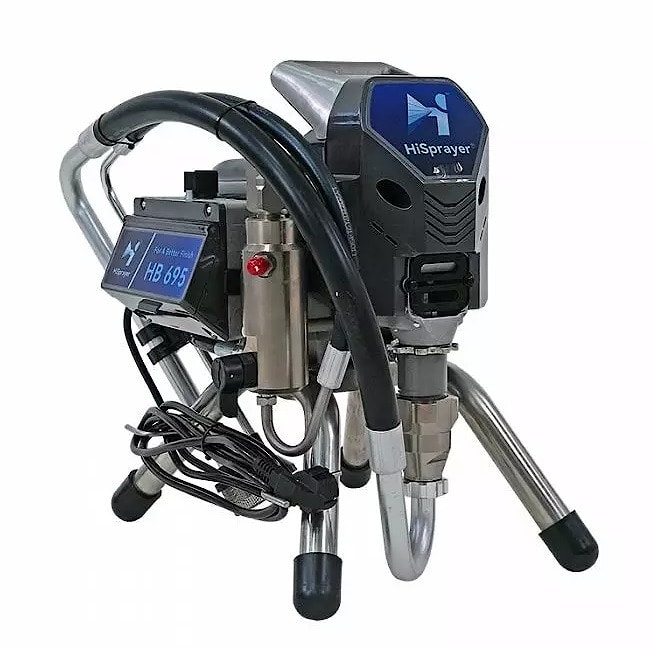 Безвоздушный окрасочный аппарат HVBAN/HISprayer HB-695 высокого давления - аналог Graco ST Max II 595 - 0,025″, 2,7 л/мин, 230 бар, 1,5 кВт - окрасочное оборудование безвоздушного распыления водоэмульсионных и масляных красок низкой и средней вязкости, лакокрасочных материалов на основе растворителей, лаков, эмалей, эпоксидных и полиуретановых составов. Аппарат изготовлен в Китае.
