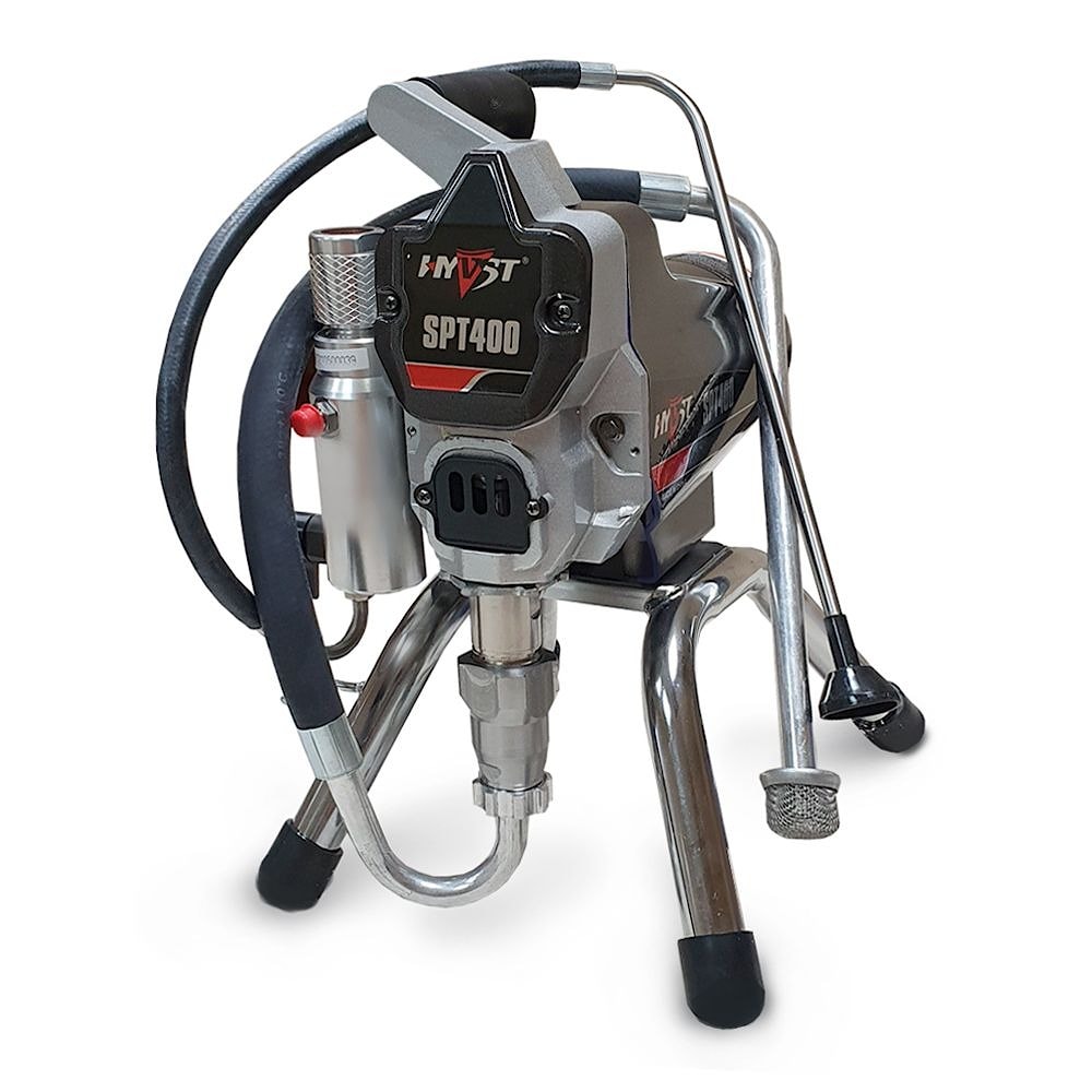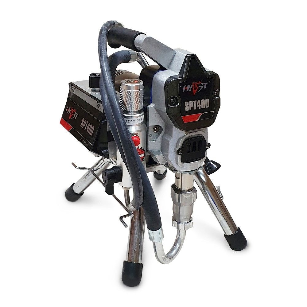 HYVST SPT 400 – модернизированный SPT 390 - оборудование для проведения покрасочных работ безвоздушным способом. Окрасочный аппарат применяют для небольших объемов покрасочных работ на строительных площадках, при покраске стен, потолков, фасадов, грунтования и покраска металла. Окраска от окрасочного агрегата ведется через специальный краскопульт для безвоздушного распыления краски под высоким давлением.