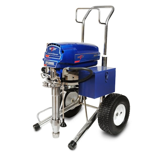 Окрасочный агрегат HYVST SPT 1080L работает от электрического мотора 220 вольт, и предназначен для распыления лакокрасочных материалов средней и высокой вязкости. Окрасочный аппарат используют для нанесения огнезащитных красок на металлоконструкции, финишных готовых распыляемых шпаклевок, антикоррозионных красок по металлу, грунтовок и эмалей, красок по дереву, акриловых и латексных красок по стенам и потолкам, фасадных красок. Окрасочный аппарат может работать на двоих маляров одновременно. Краску засасывает из ведра с помощью длинного насоса. Окрасочный аппарат может распылять краски и шпатлевки более вязкие, чем HYVST SPT 1050.