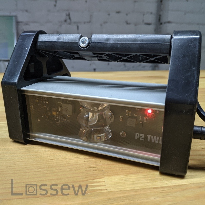 Проявочная лампа маляра Lossew lamp P2 TWL на аккумуляторе. Яркая и энергоэффективная (мощность светодиодов всего 7 Вт, световой поток более 800 Лм, сила света более 3200 кд). Используется на строительной площадке для контроля качества отделочных работ.