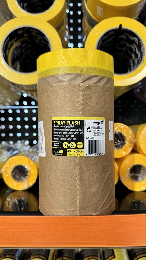 Укрывочная бумага с малярной лентой Pentrilo Spray Flash 30 см. Ширина: 30 см, длина 45 м. Артикул: 09686.