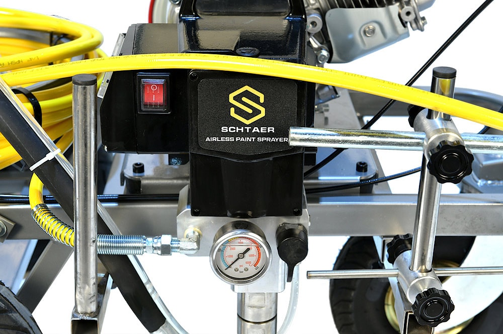 Машина SCHTAER WEGA 5 изготовлена в Китае и служит для нанесения дорожной разметки краской на асфальт. Разметочная машина собрана на базе поршневого насоса для краски и бензинового двигателя. Разметочную машину для нанесения дорожной краски можно толкать, также ее можно использовать как подающий поршневой насос с бензиновым двигателем и держать машину в кузове грузовика, нанося краску окрасочным пистолетом вручную по шаблону. Машину может наносить как прямые линии, так прерывистые. Также, благодаря переднему поворотному колесу, можно наносить радиусы, фиксируя переднее колесо под нужным углом.