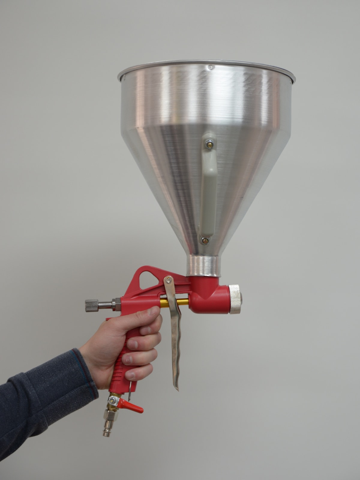 Картушный пистолет-распылитель FR300 предназначен для нанесения средне- и вязких материалов: штукатурок, шпатлевок, структурной/фактурной краски, наполненной кварцевым наполнителем грунтовки и других материалов в потоке сжатого воздуха, подаваемого из компрессора.