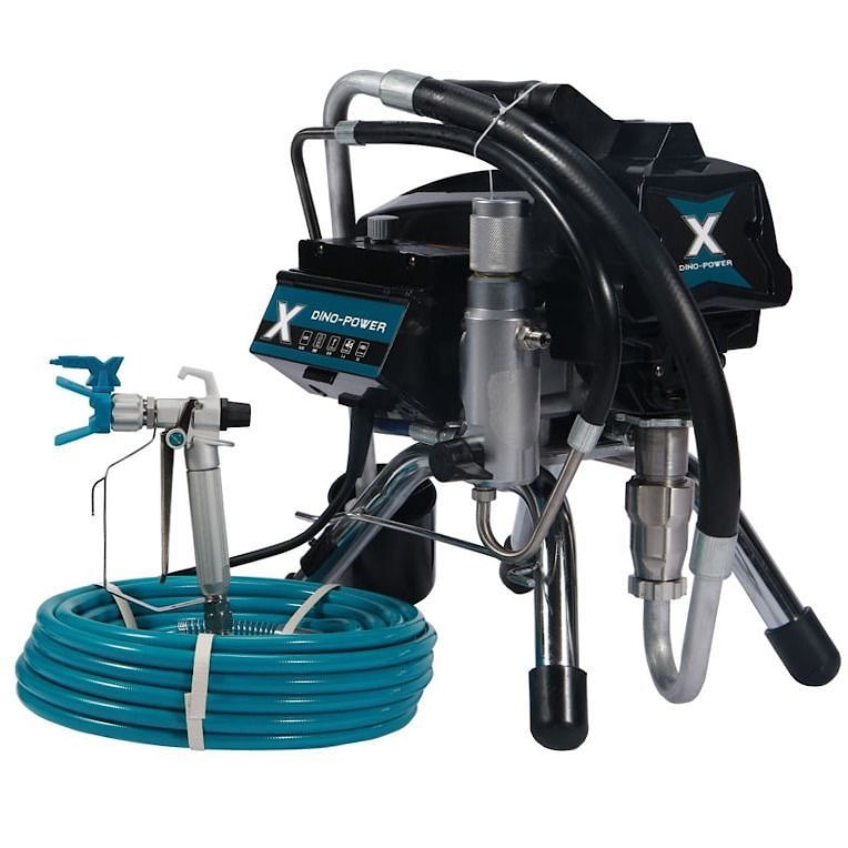 Поршневой окрасочный аппарат Dino-Power DP-X24 отлично подойдет для покраски металлоконструкций, стен и потолков в квартирах, коттеджах и офисах. Аппарат предназначен для работы с составами низкой и средней степени вязкости, такими как пропитки, антисептики, грунтовки, морилки, краски на водной основе и на основе органических растворителей, лаки, масла и т.д. Принцип работы аппарата следующий: всасывающий шланг погружается в емкость с краской, закачивается в насосную систему и по напорному шлангу подается на краскораспылитель.