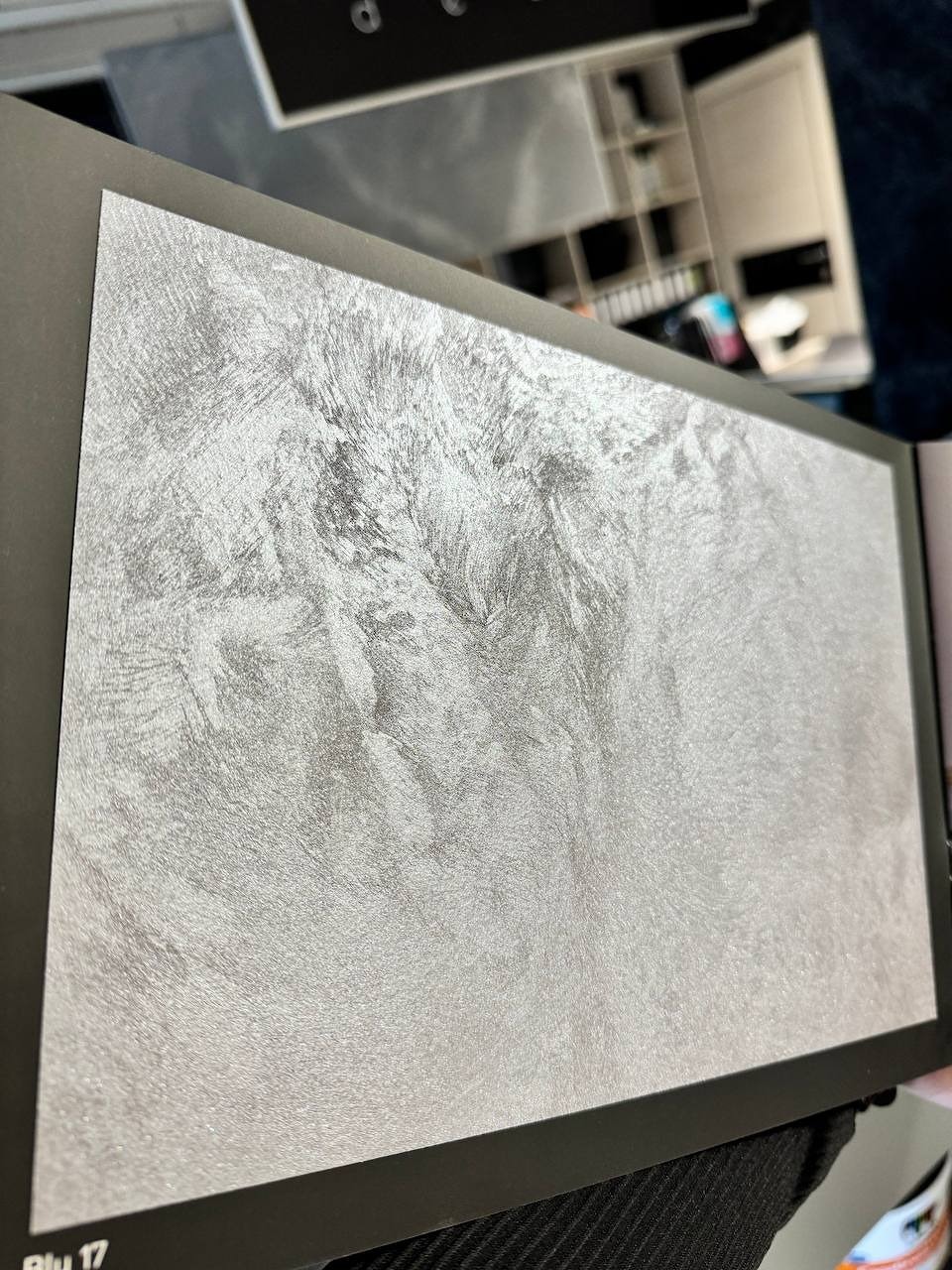 Необходимо брать на шпатель лишь столько материала, сколько возможно нанести за проход. Во избежание видимых наложений необходимо покрывать поверхность в технике «мокрое по мокрому» без перерывов. Избегать высыхания материала на шпателе.