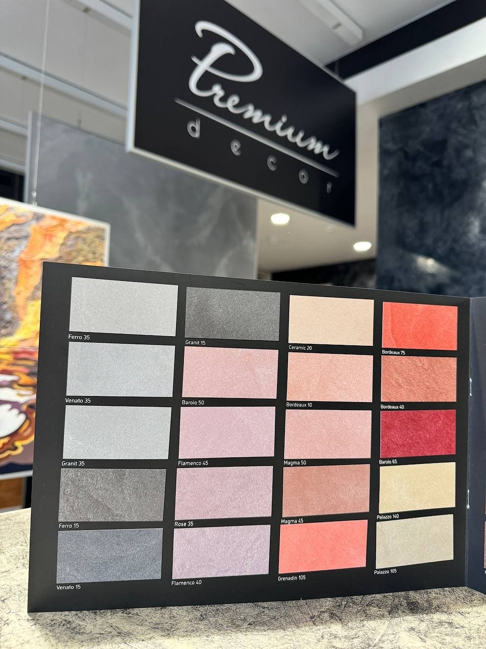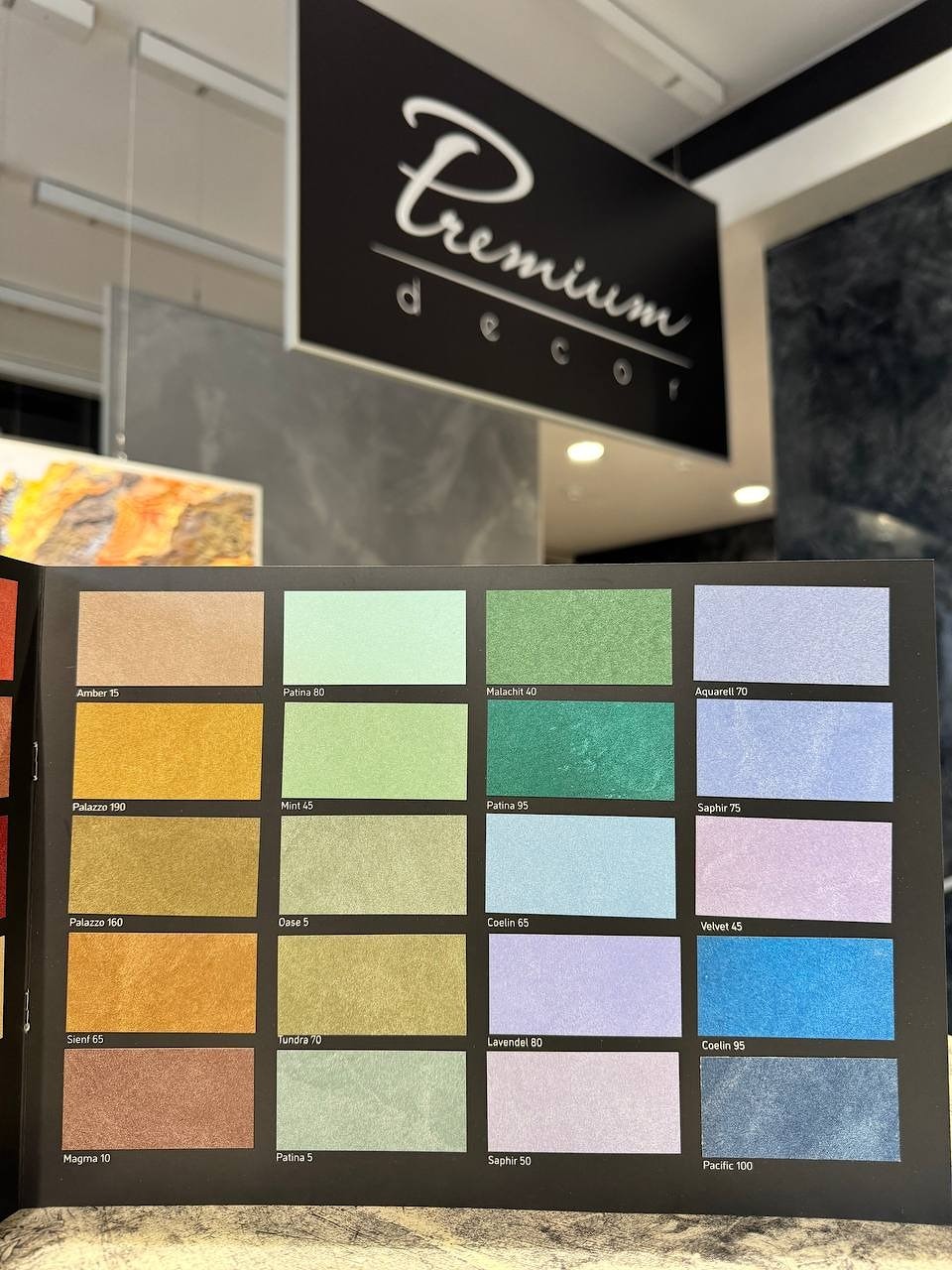 Рисунок декоративной поверхности является типичным для шпатлевочных техник и зависит от выбранной техники нанесения, а также от интенсивности оттенка. Темные оттенки проявляют более выраженный рисунок, чем светлые.