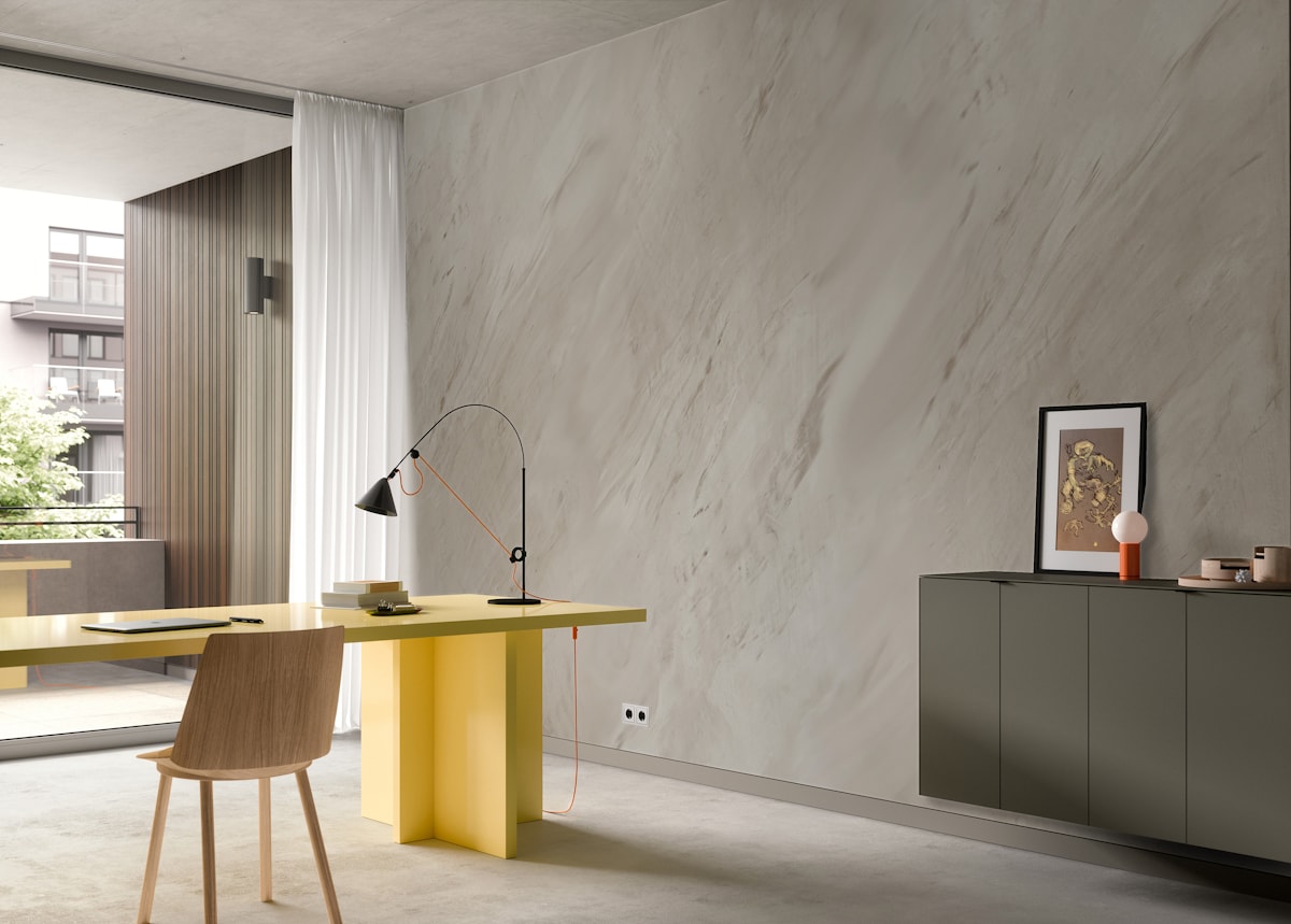 Штукатурка для создания среднефактурных и рельефных покрытий с эффектом природных и современных минеральных поверхностей, например натурального камня и горных пород, цемента, бетона, травертина, известняка, песчаника, туфа и пр.