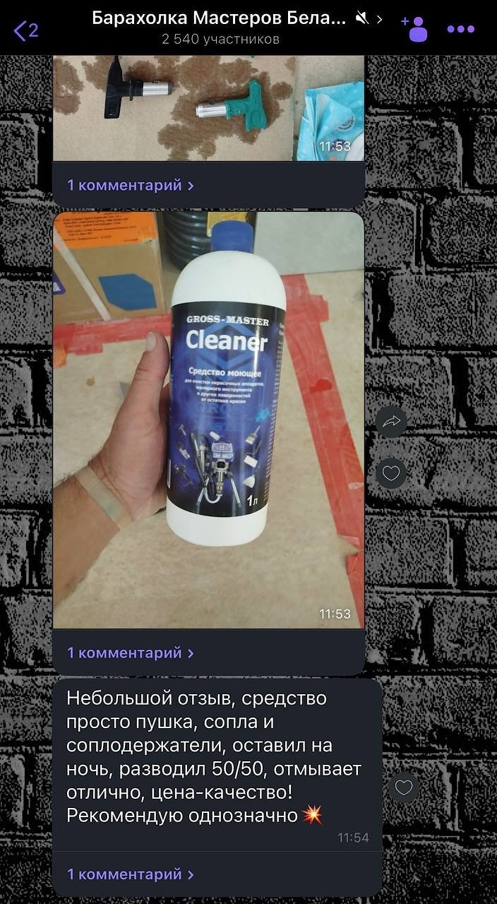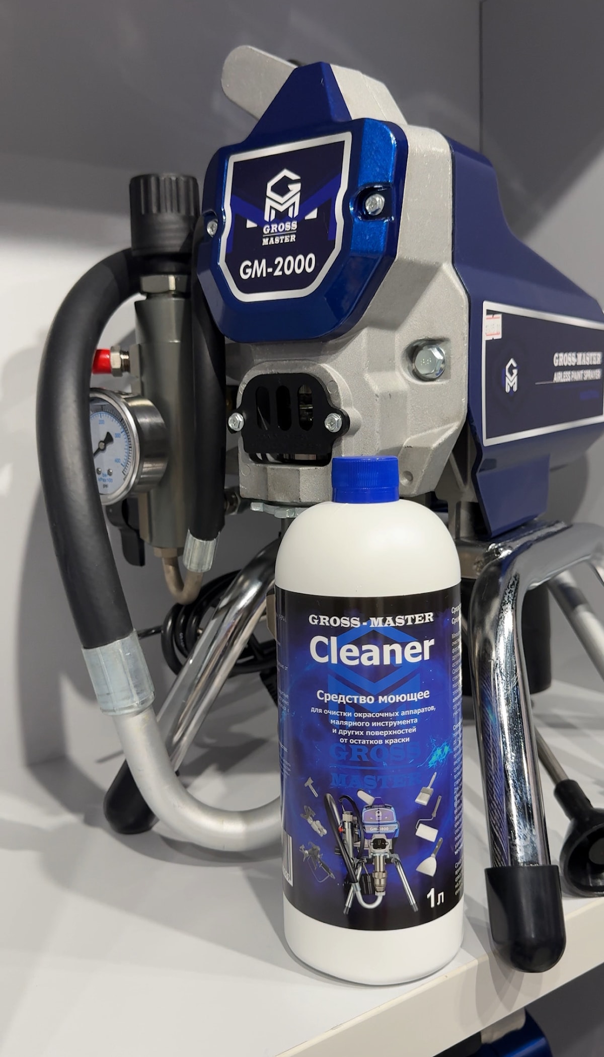 Эффективное моющее средство "ГРОСС-МАСТЕР Клинер" без органических растворителей для очистки окрасочных аппаратов и их частей (краскопульты, форсунки, фильтры и др.), малярного инструмента и других поверхностей от загрязнений, вызванных остатками краски (акриловой, алкидной, масляной).