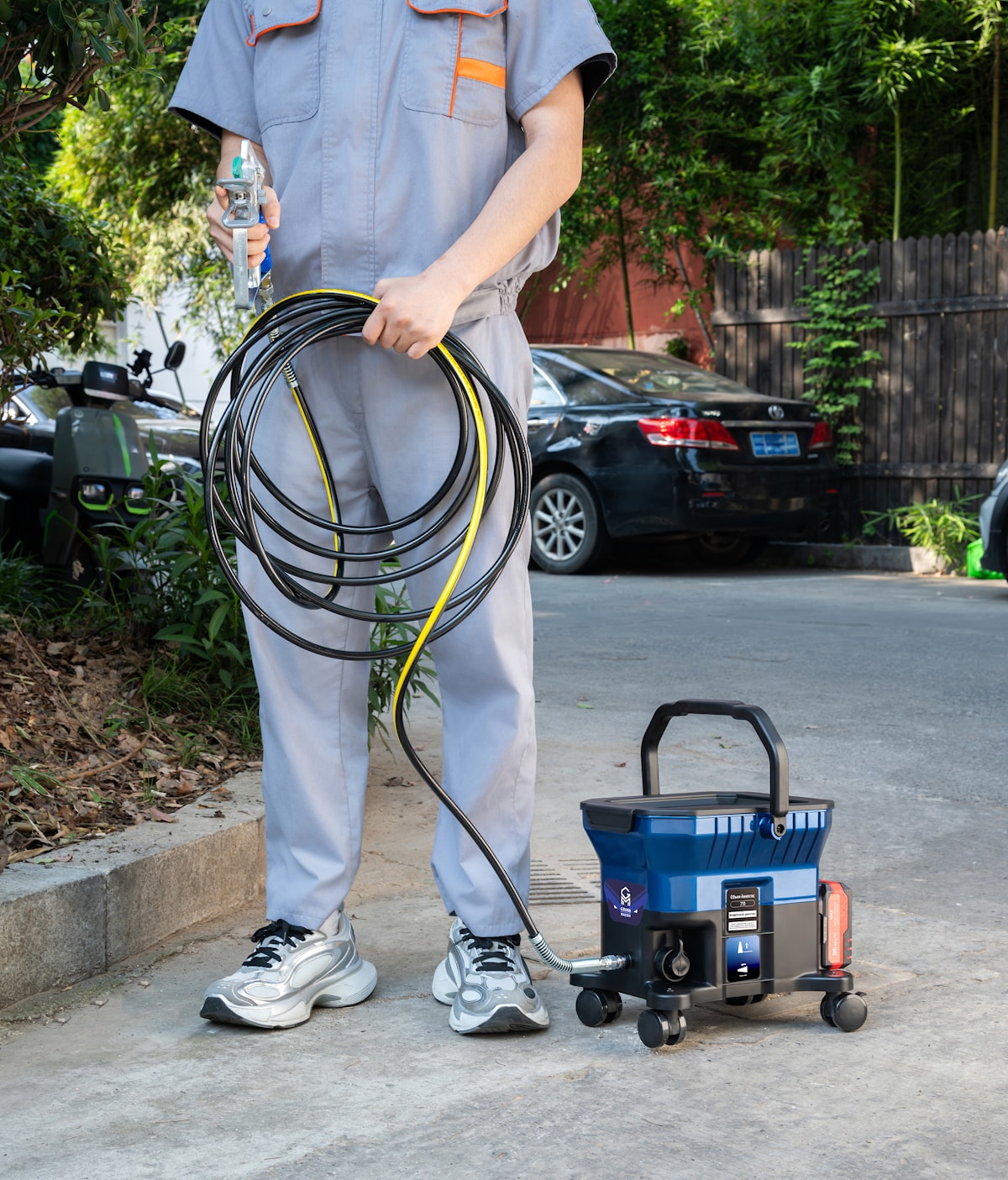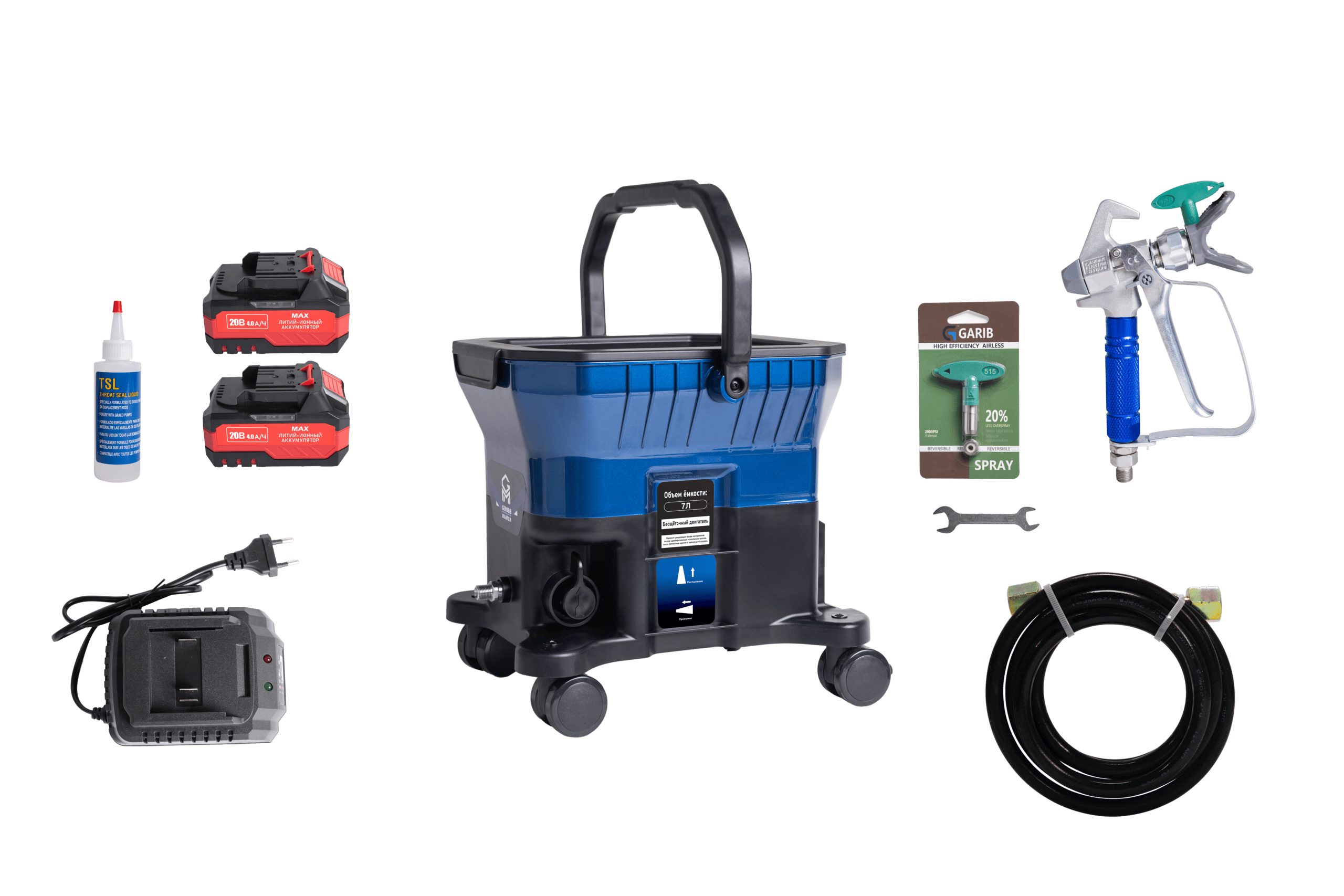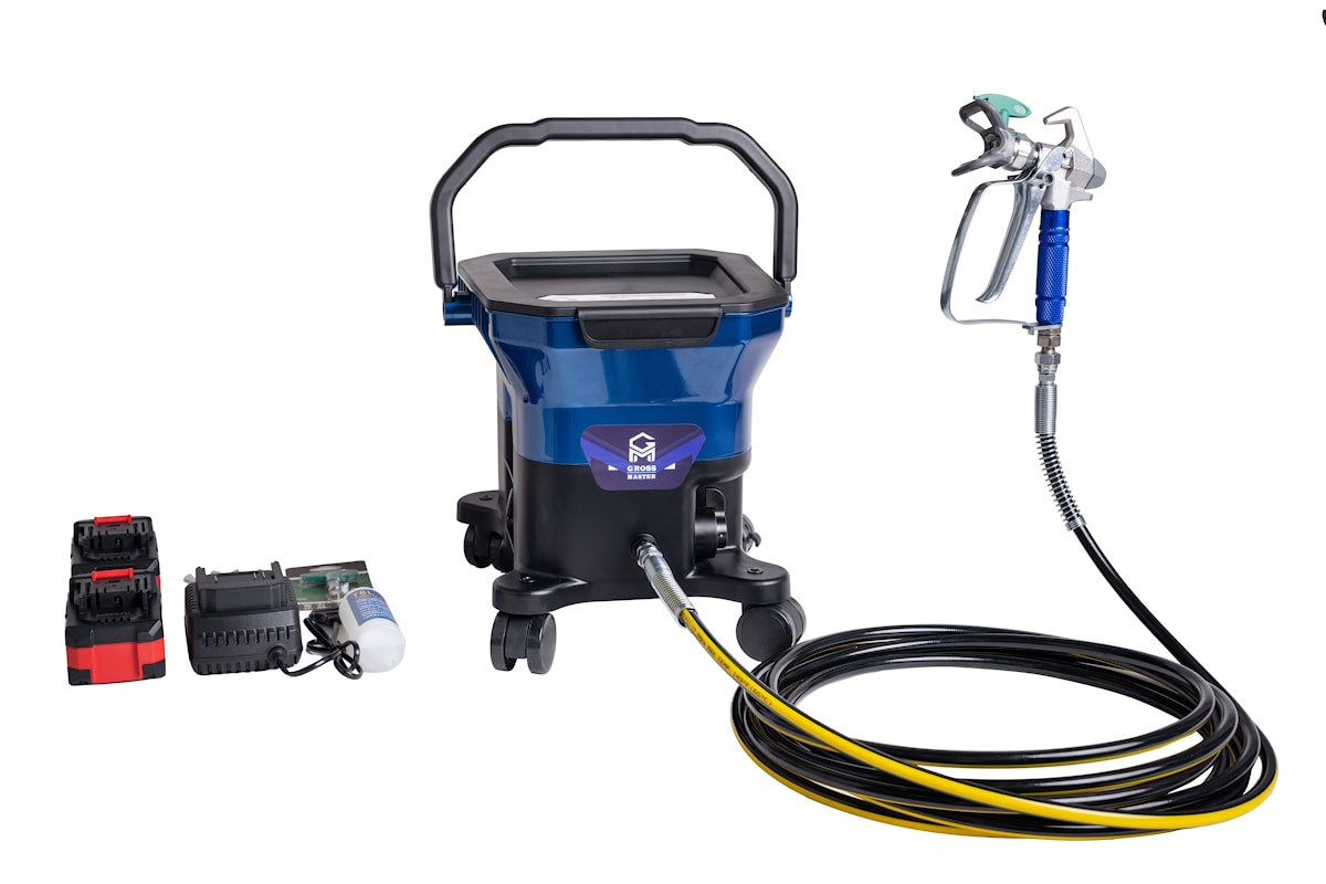 Безвоздушный портативный окрасочный аппарат GROSS-MASTER GM Mobil - удобный и простой в эксплуатации, на колесах. Используется для нанесения водно-дисперсионных грунтовок, лаков, лазурей, интерьерных и фасадных красок.