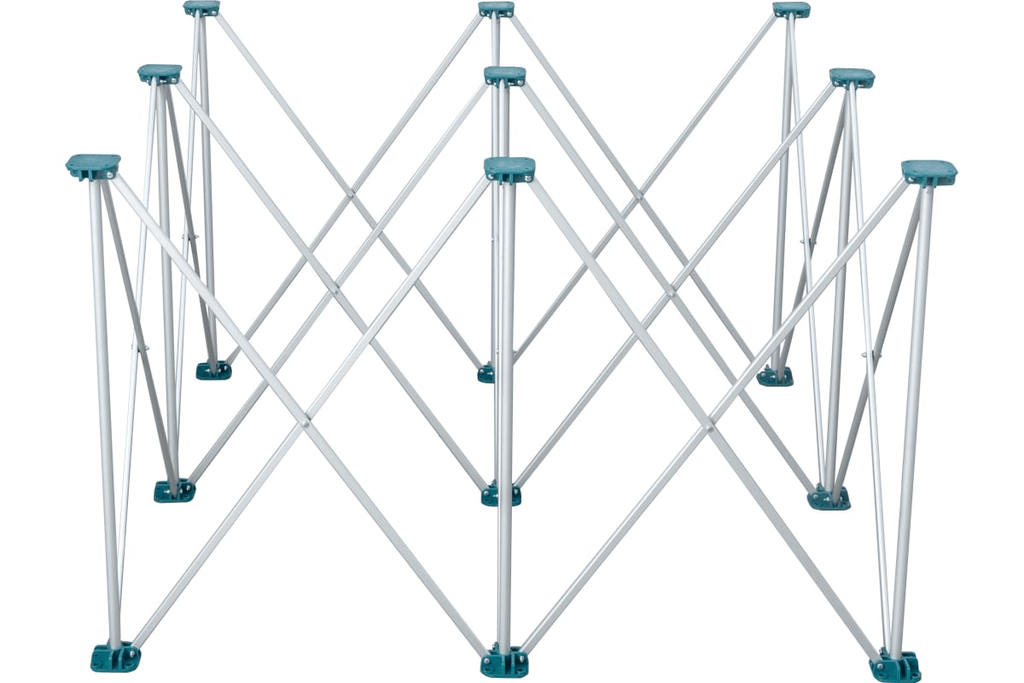 Подстолье состоит из вертикально расположенных опорных стоек, состоящих из двух вставленных друг в друга алюминиевых труб. Опоры изготовлены из полиамида в которые вмонтированы гайки для крепления столешниц, ГКЛ и так далее.