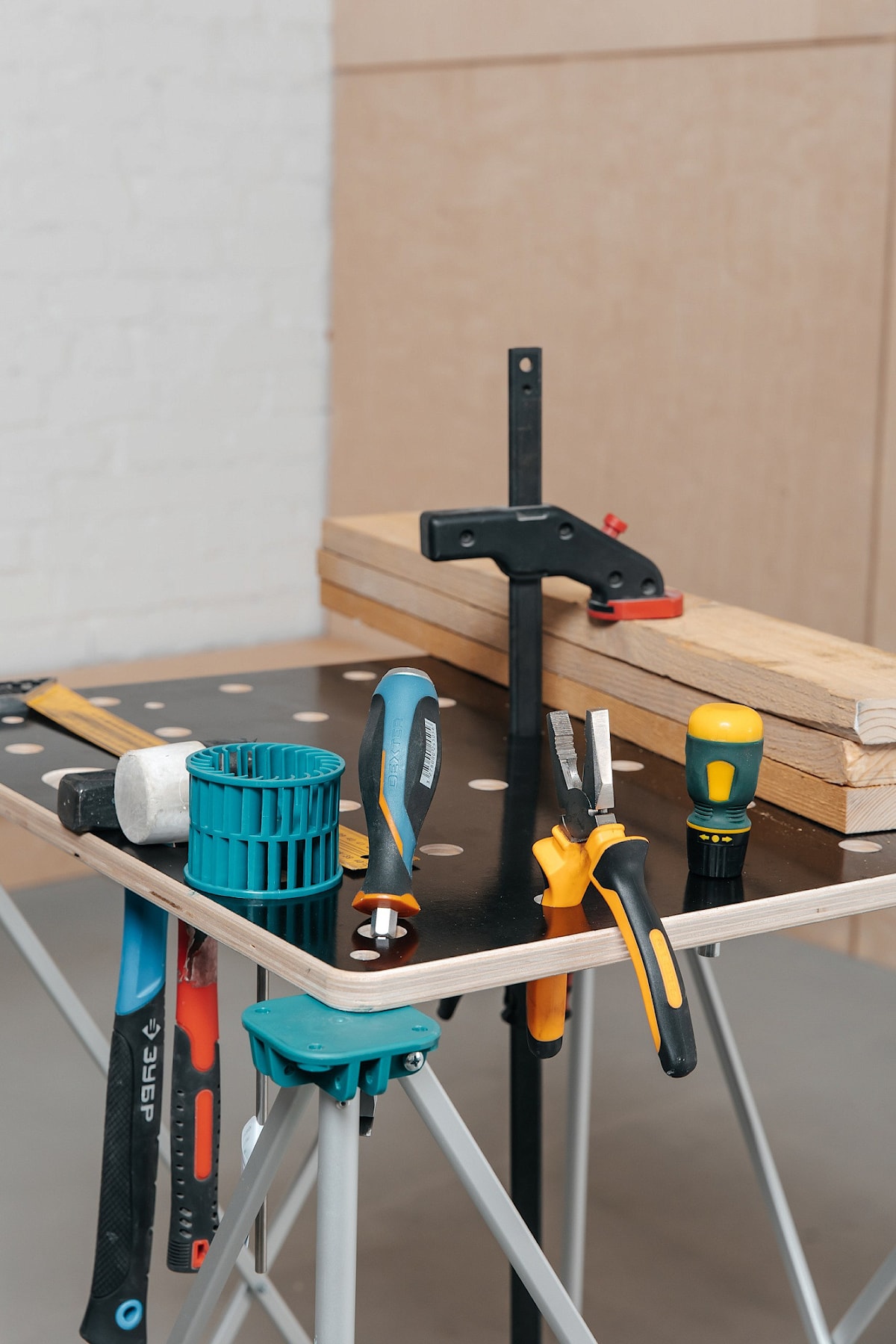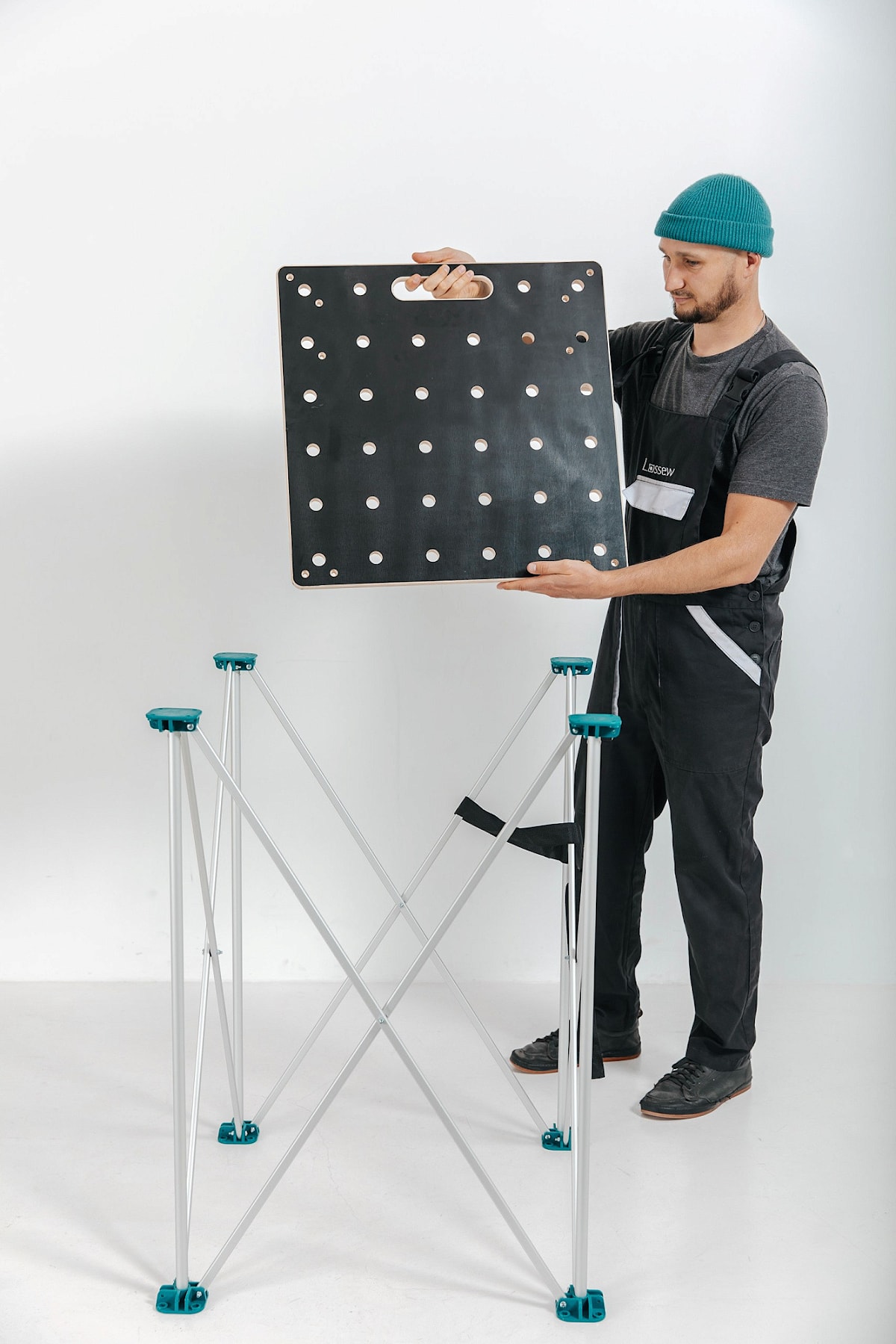 Перфорация позволяет использовать стол как настоящий верстак, хранить мелкий инструмент, фиксировать детали