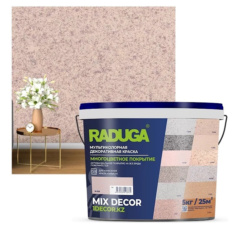 | Применение | 1. Очистите поверхность от старого основания. Трещины и сколы необходимо зашпатлевать. Затем прогрунтуйте сухое основание укрепляющей грунтовкой «Primer Радуга-27», грунтовкой глубокого проникновения «Primer Радуга-017» или универсальной стабилизирующей грунтовкой «Primer Радуга-28». 2. Аккуратно перемешайте краску взбалтыванием или переливая из одной емкости в другую. Не используйте для перемешивания миксеры или иные механические устройства. 3. Все заявленные свойства покрытие приобретает спустя 7 суток после высыхания при соблюдении условий применения. 4. Перед нанесением MIX DECOR окрасьте поверхность фоновой краской. Качество фоновой краски должно соответствовать условиям эксплуатации окрашиваемой поверхности. Допускается разбавление водой, но не более 5%! При нанесении t°С поверхности и окружающей среды должна быть не ниже +8 °С. |