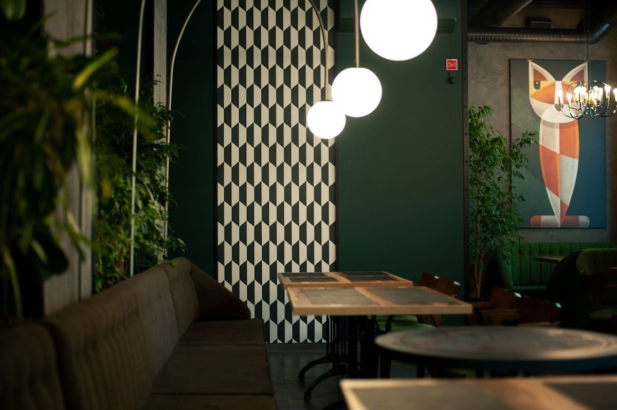 Приглушенная благородная палитра задаёт помещению особенный характер, а мебель и мягкое освещение располагают к расслабленной, уютной атмосфере.