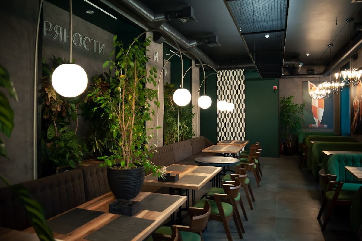 Благородные оттенки изумрудного и серого, природные фактуры, интересный декор и обилие живых растений - таким стал интерьер нового ресторана в Гомеле "Пряности и радости" @pryanosti_radosti2022