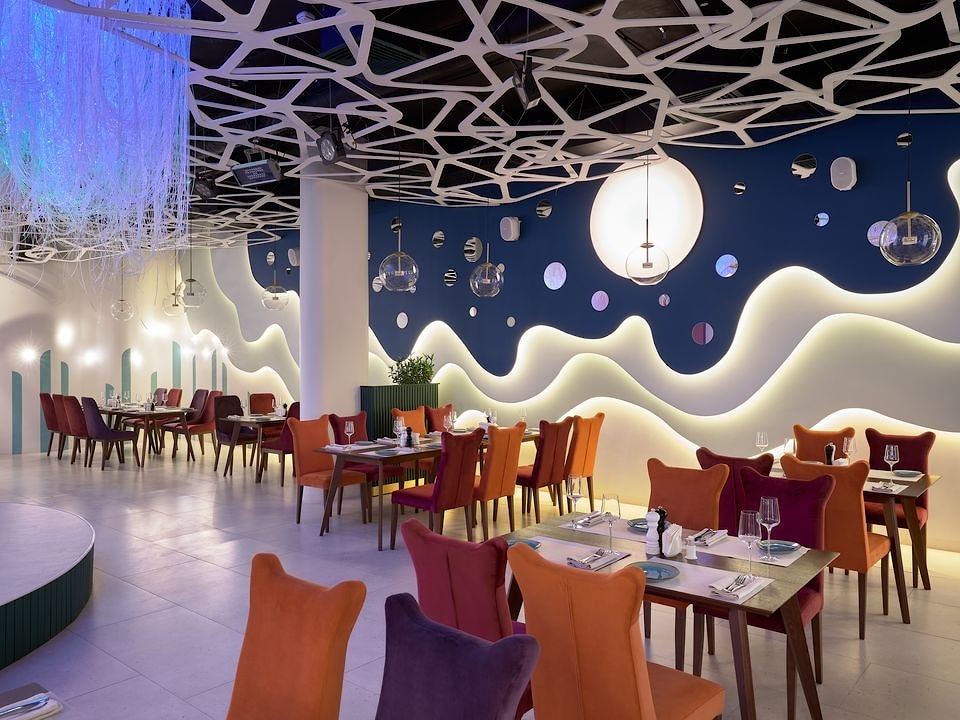 Стены ресторана Miracle окрашены износостойкой моющейся краской #Amphibolin, которая отлично подходит для помещений подобного типа.