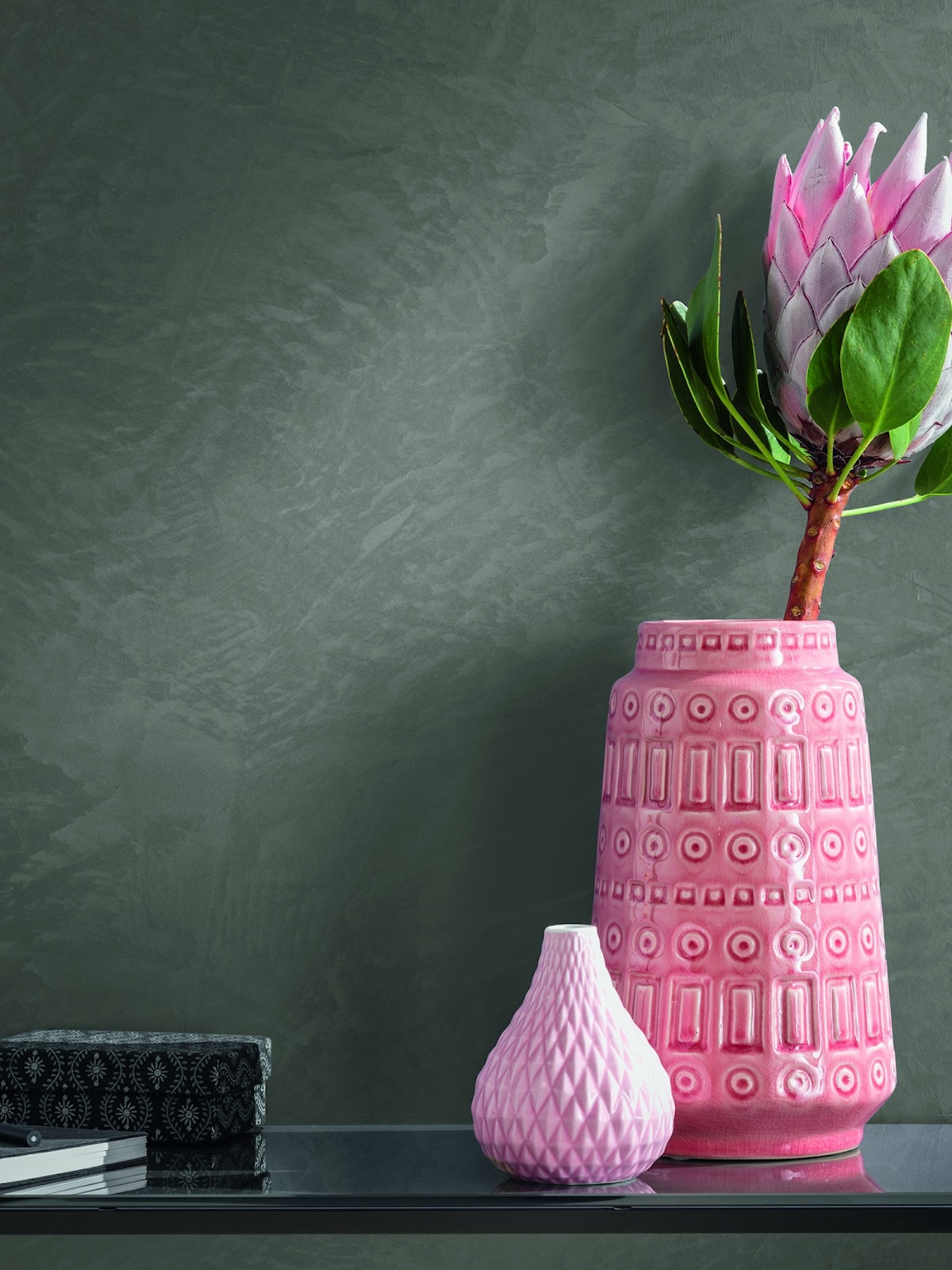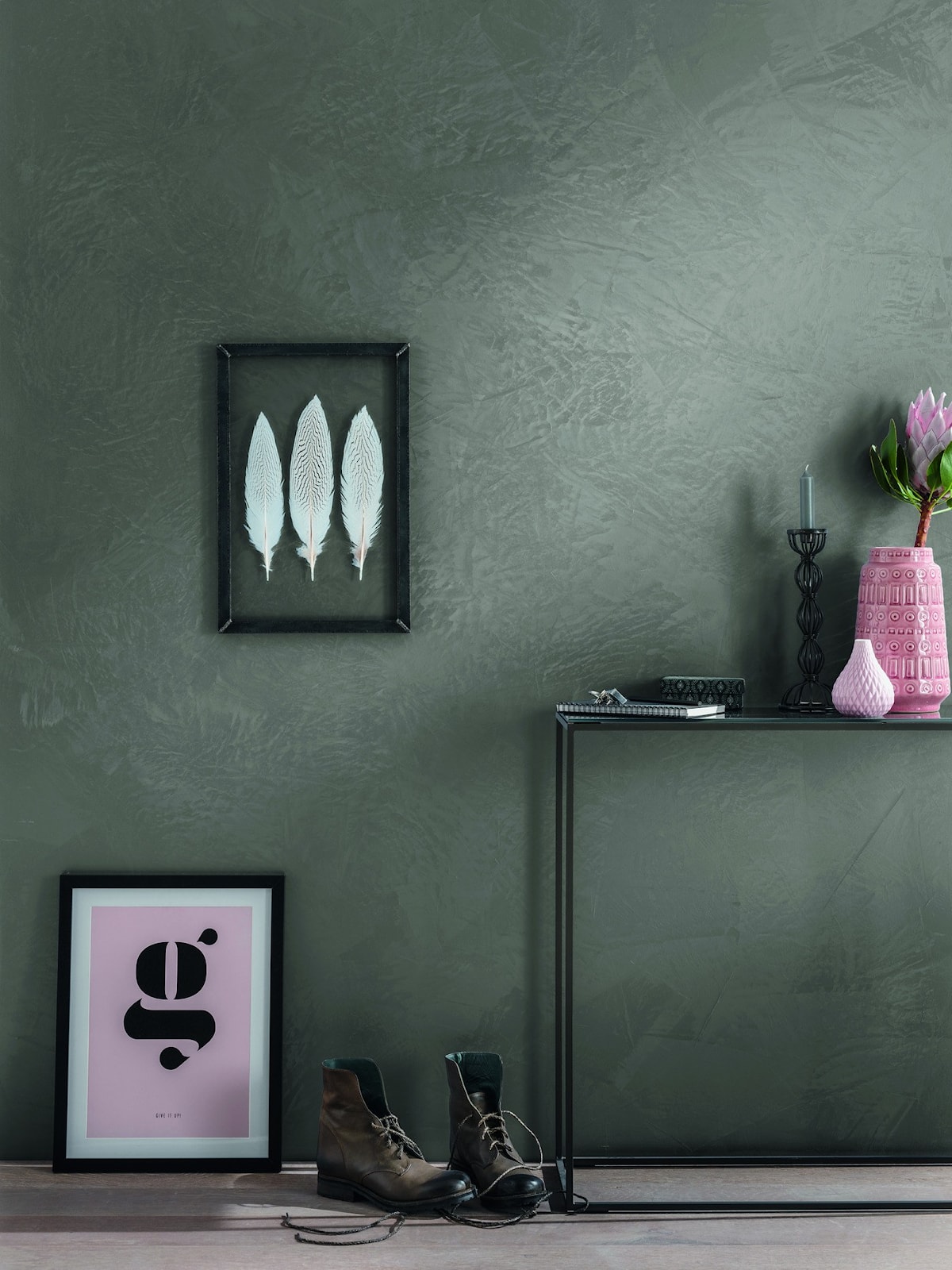 Характерный для декоративных техник рисунок поверхности зависит от интенсивности выбранного цветового оттенка и техники нанесения.