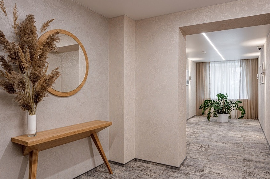 Санаторий "Юность" расположен на берегу Минского моря. Это современный оздоровительный комплекс в сосновом лесу со SPA и Wellness-центрами, при отделке которого использовались материалы ПРЕМИУМ Декор. Самым ярким примером можно назвать декоративный состав «Смак эндарфiнаў»: