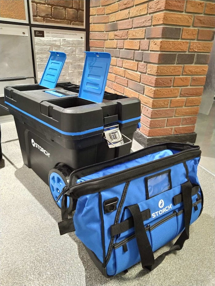 | Сумка для инструментов STORCH Werkzeugtasche. Размер: 43 x 24 x 28 см. Из прочной нейлоновой ткани. Ручной захват и съемный ремень для переноски. Внутренние и наружные карманы частично на молнии. Окошко для визитки. Твердое основание для безопасной установки. Арт.: 29 59 00. |