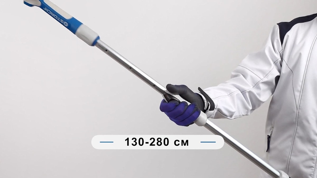 Удлинитель выполнен из алюминия, благодаря чему не нагружает руку маляра лишним весом. Оснащен системой двойного выдвижения для быстрой и простой регулировки длины