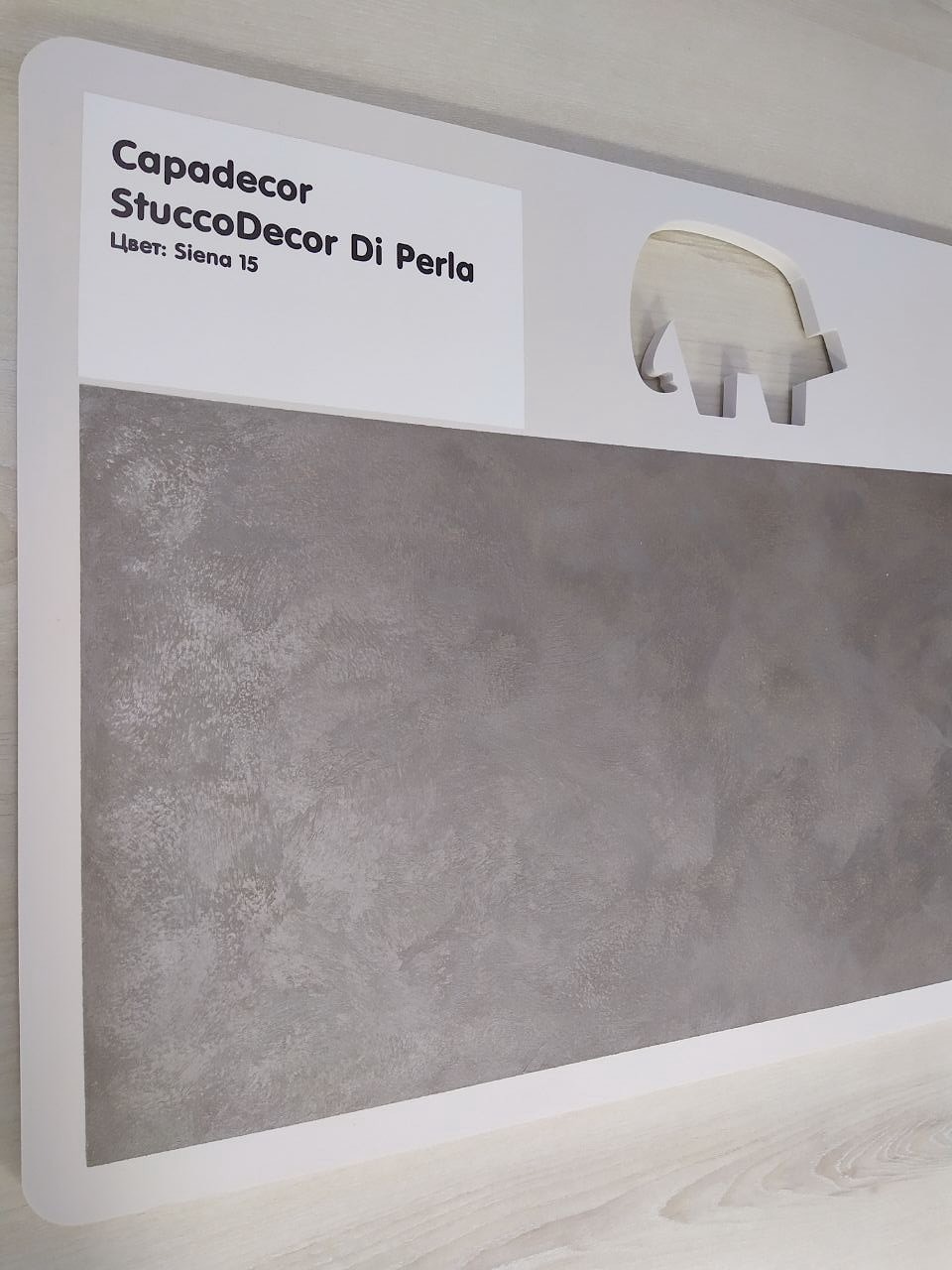 Изысканные перламутровые переливы материала напоминают обтянутые бархатом стены дворцов и создают в интерьере атмосферу элегантности и роскоши. Материал представляет собой шпатлевочную массу с металлическим оттенком для индивидуального декоративного оформления внутренних стен и потолков. Используется для внутренней высококачественной декоративной отделки отелей, кафе, ресторанов, офисов, врачебных кабинетов, квартир, помещений в клиниках и т. д. Capadecor StuccoDecor DI PERLA является одним из современных видов венецианских штукатурок.